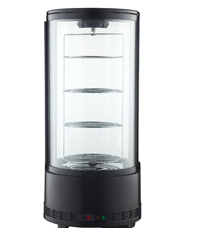 ঘূর্ণনযোগ্য কেক রেফ্রিজারেটেড ডিসপ্লে ক্যাবিনেট, ক্যাবিনেটের ভিতরে 2 পক্ষের LED লাইট সহ, ইলেকট্রনিক থার্মোস্ট্যাট সহ তাপমাত্রা প্রদর্শন, অর্ধবৃত্তাকার দরজা, বায়ু শীতল রেফ্রিজারেশন,স্বয়ংক্রিয় বরফ.